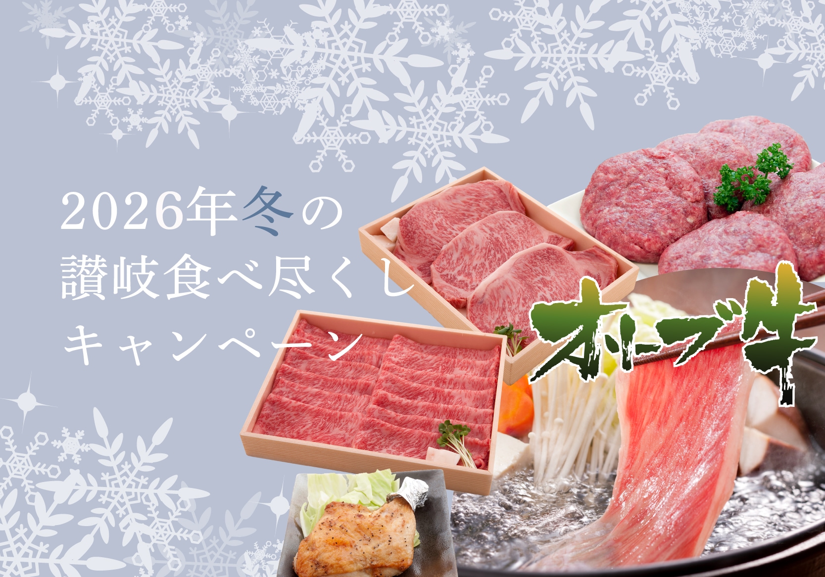 - オリーブの国「讃岐」が育むプレミアム和牛。健康にも良いオレイン酸を豊富に含み、通常の和牛に比べさっぱり・やわらかな食べ応え。肉のヒガシハラ>からは「オリーブ牛・焼肉用」をはじめ、「オリーブ牛ハンバーグ」「骨付き鶏」と、香川県が誇るおいしいお肉をセットにした「讃岐を贈る」シリーズが販売中。お中元や内祝いのギフトや、家族とのディナーにも大満足な豪華なセット。